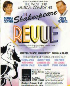 The Shakespeare Revue (Royal Shakespeare Company at the Barbican, Vaudeville Theatre in the West End & International tours 1995-2003, various productions 2004, 2005, 2007, 2008, 2010-13)